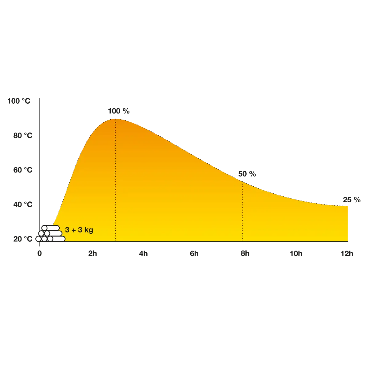 - Mittlere Wärmeabgabe: 3 kW/h